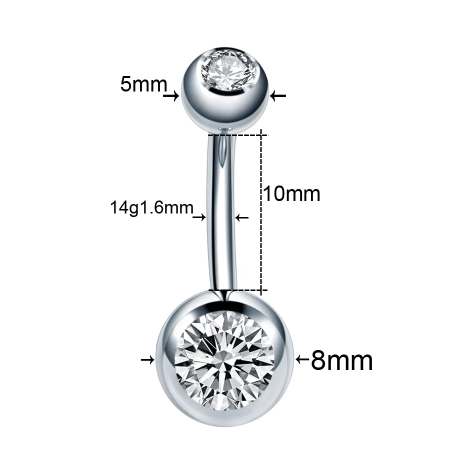 ✨ Lot de 10 Piercings Nombril Double Cristal – En Titane G23