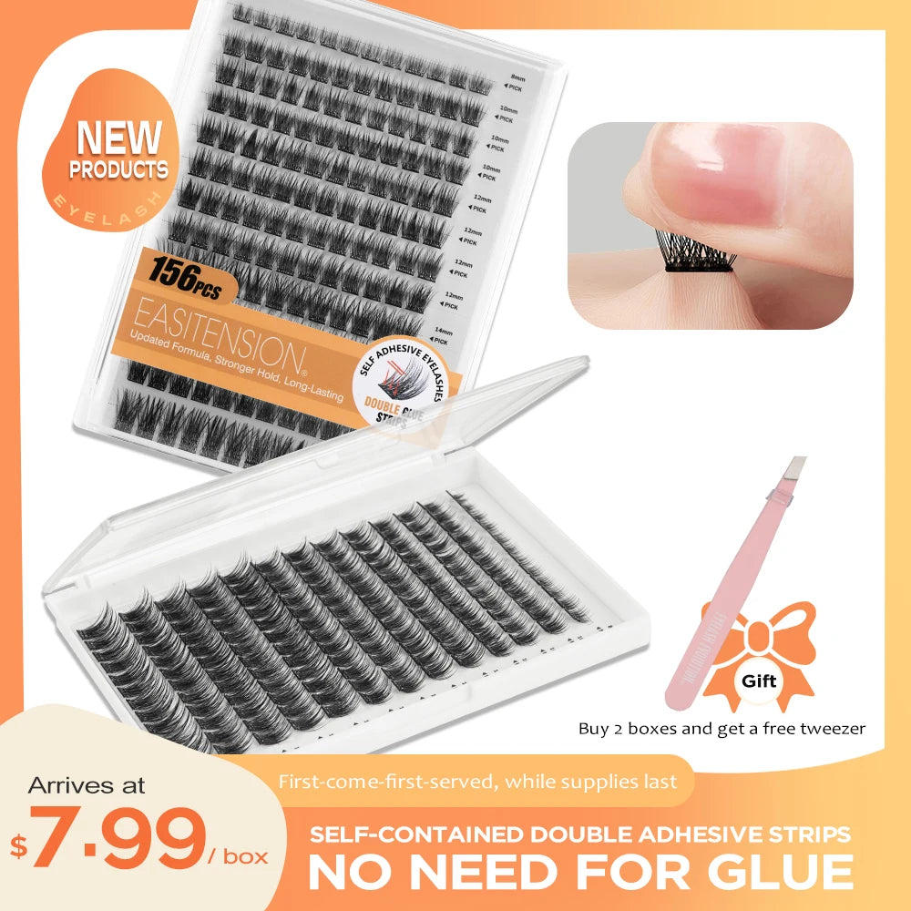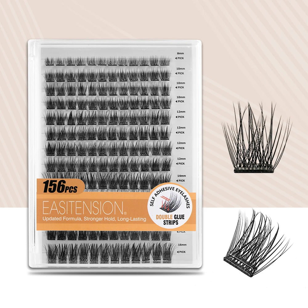 Cils Auto-Adhésifs en Grappes – Courbure D, 156 Segments