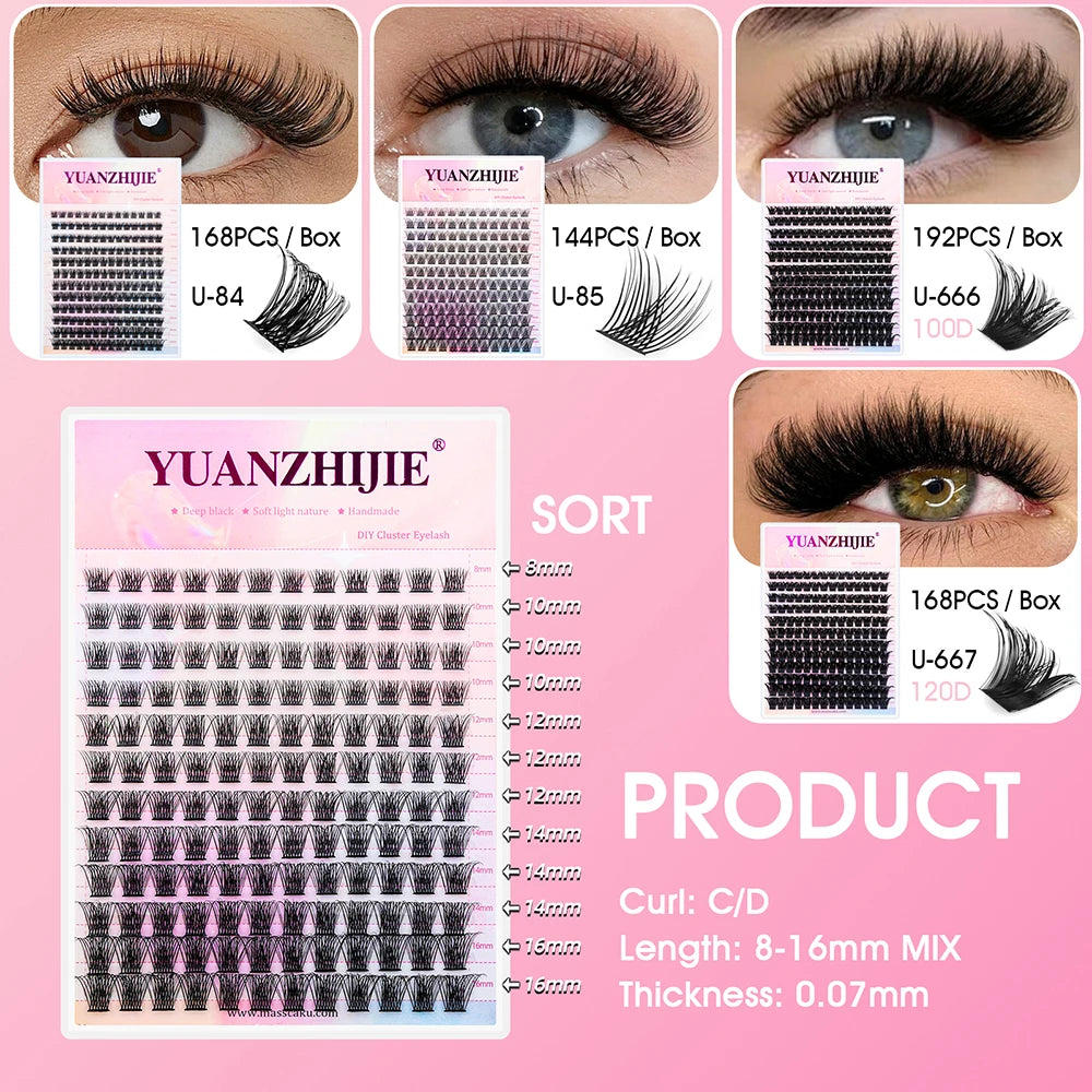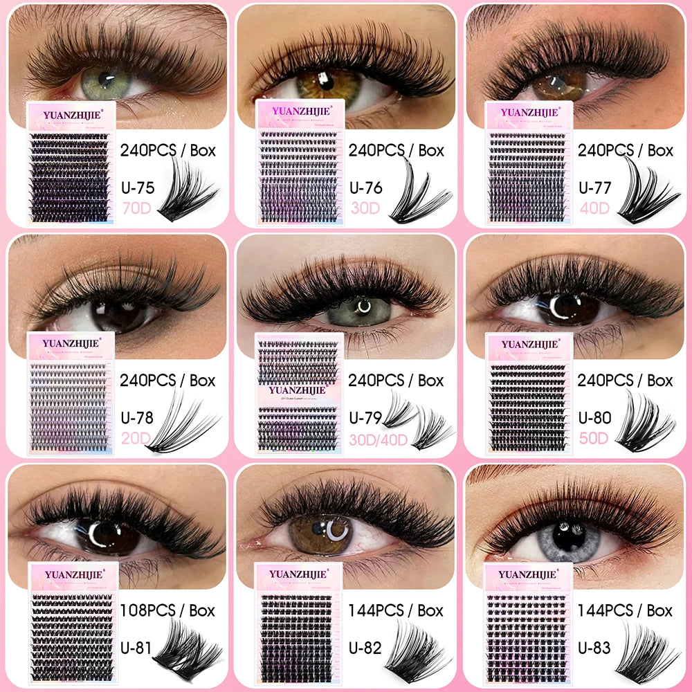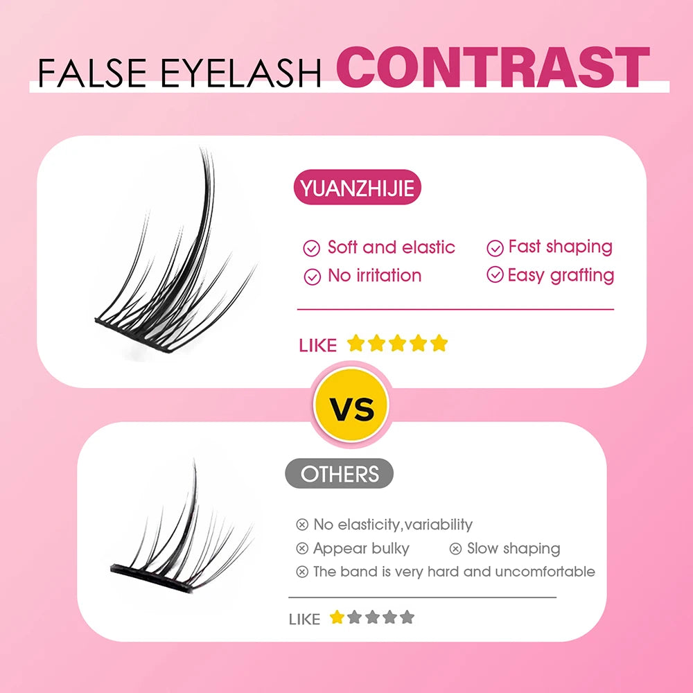 Les faux cils DIY auto-adhésifs YUANZHIJIE sont la solution idéale pour un regard intense, glamour et naturel à la maison. Fabriqués à partir de fibres PBT coréennes haut de gamme, ces clusters sont légers, doux, noirs mats et parfaitement incurvés (D curl), pour s’adapter à toutes vos envies.